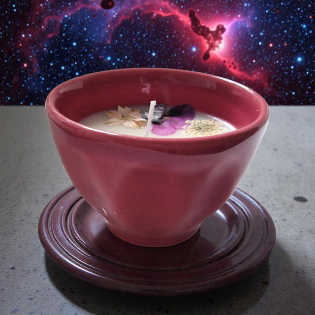 Galaxie Tendre évoque la magie et la douceur d’un ciel étoilé. Coulée dans un élégant bol rose vintage, cette bougie crée une atmosphère chaleureuse et apaisante. Son décor de fleurs séchées naturelles apporte une touche poétique et délicate. Une fois la bougie consumée, le bol peut être réutilisé comme petite coupe décorative ou objet déco.