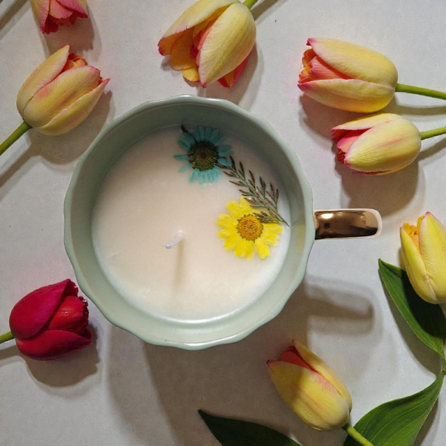 Souffle Végétal évoque la fraîcheur et la légèreté d’un jardin printanier. Coulée dans une élégante tasse vert pastel avec anse dorée, cette bougie crée une atmosphère douce et apaisante. Son décor de fleurs séchées naturelles ajoute une touche poétique et délicate. Une fois la bougie consumée, la tasse peut être réutilisée comme petit objet déco ou comme mug élégant.